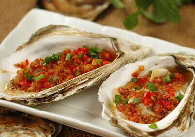 清蒸是中国人特有的烹饪技法,保留食材原有味道又不会让水分流失。蒸好的生蚝肉上淋上辣椒末和蒜茸,味道更佳。还可调制酱汁在食用时蘸取。