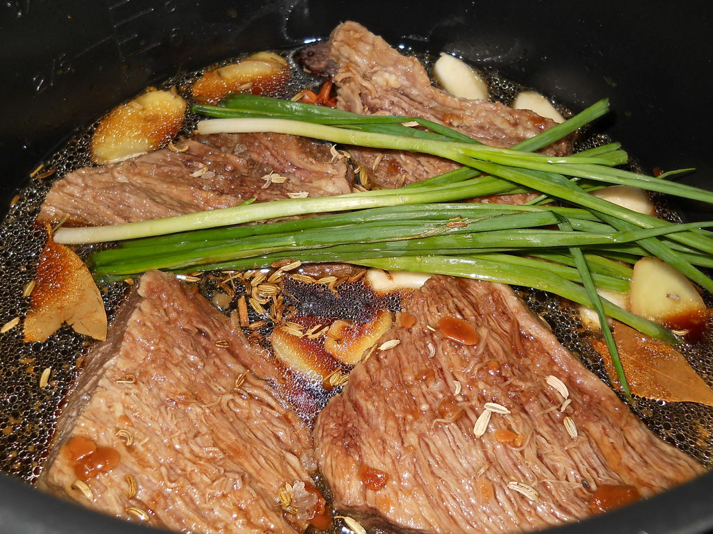 9、卤牛肉的制作方法如下第1步牛腱子洗净第2步入凉水锅中,煮出血沫之后捞出来第3步卤牛肉的香料准备好,也可以根据口味进行调整,比如加几个干辣椒什的第4步牛腱子入炖锅中,将香料全部入锅中,再倒入适量的酱油,撒适量盐第5步选择电炖锅“红烧牛肉”的程序,时间定了2个半小时,也可以。