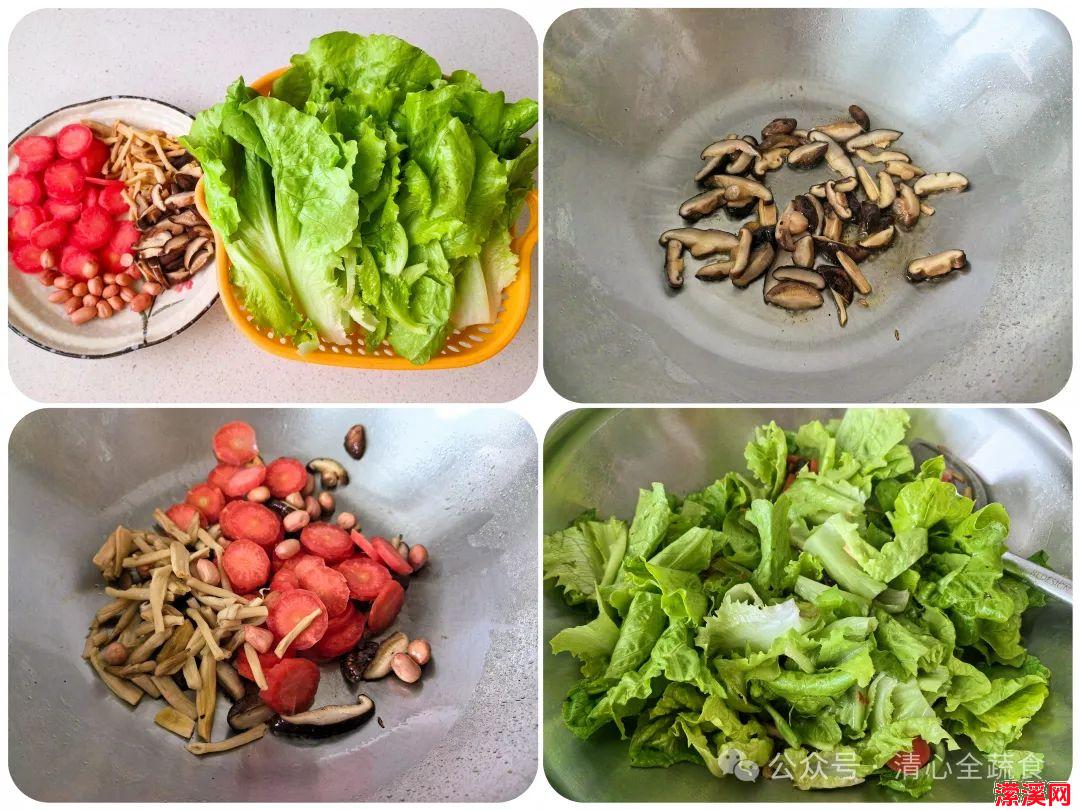 纯素 香菇黄花菜花生胡萝卜炒生菜